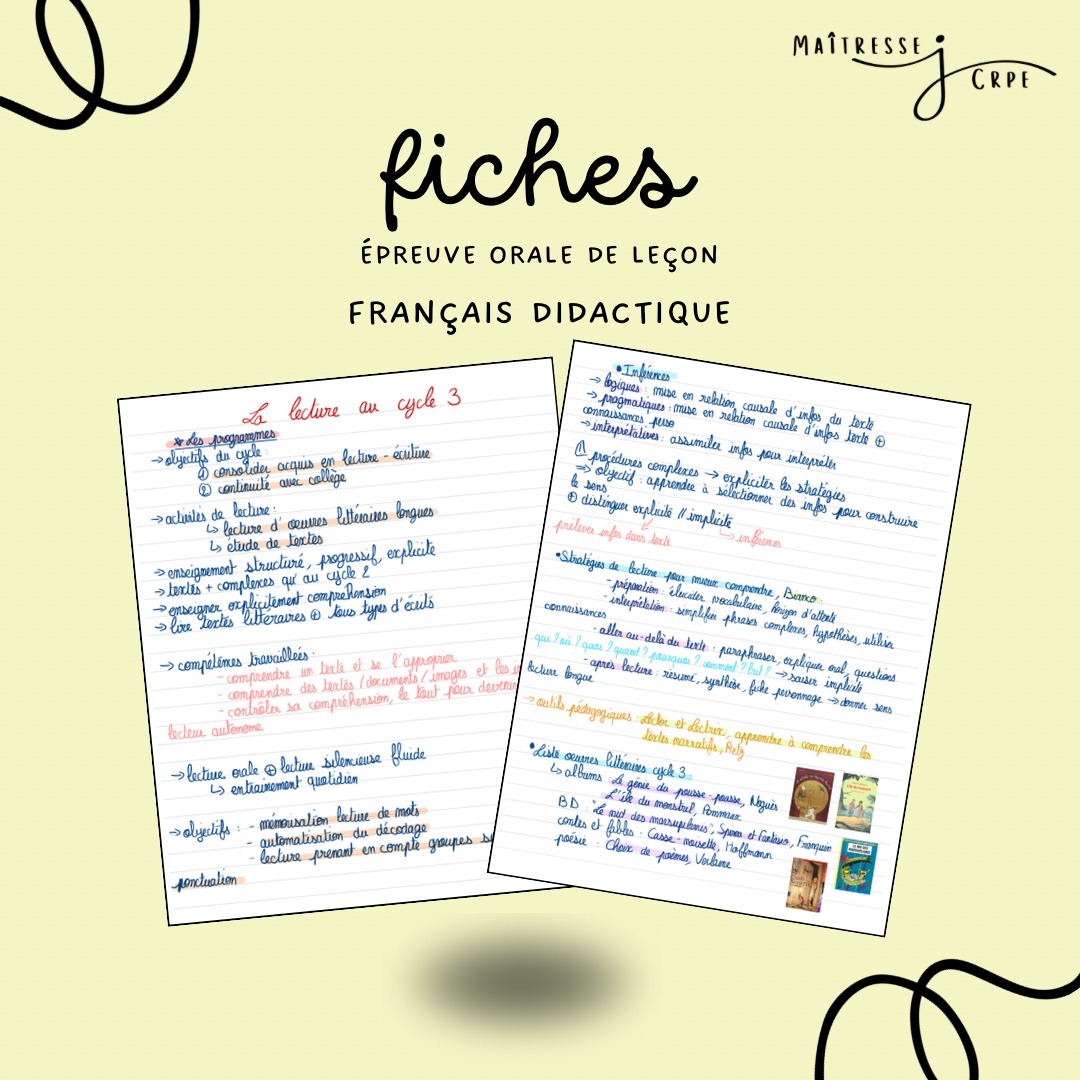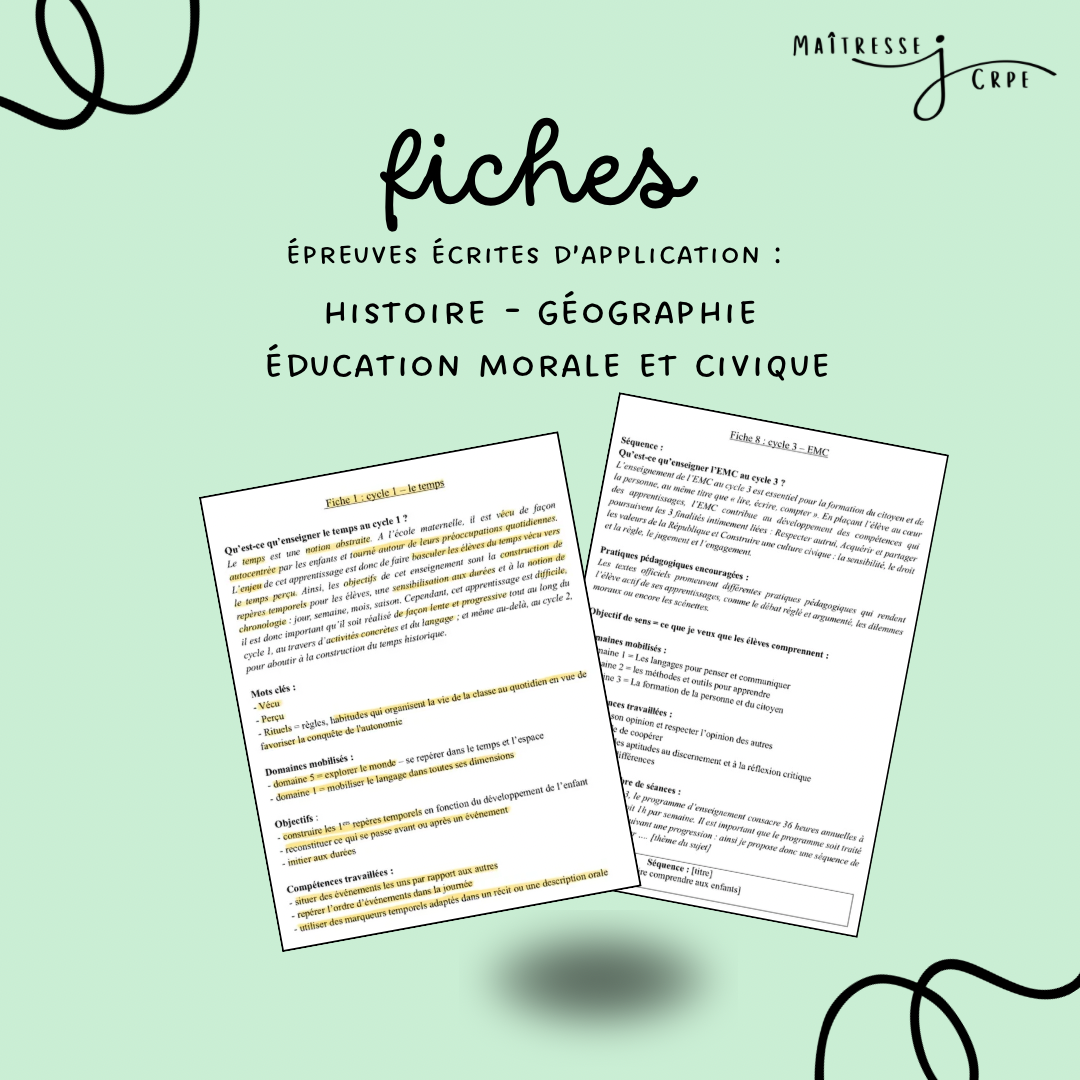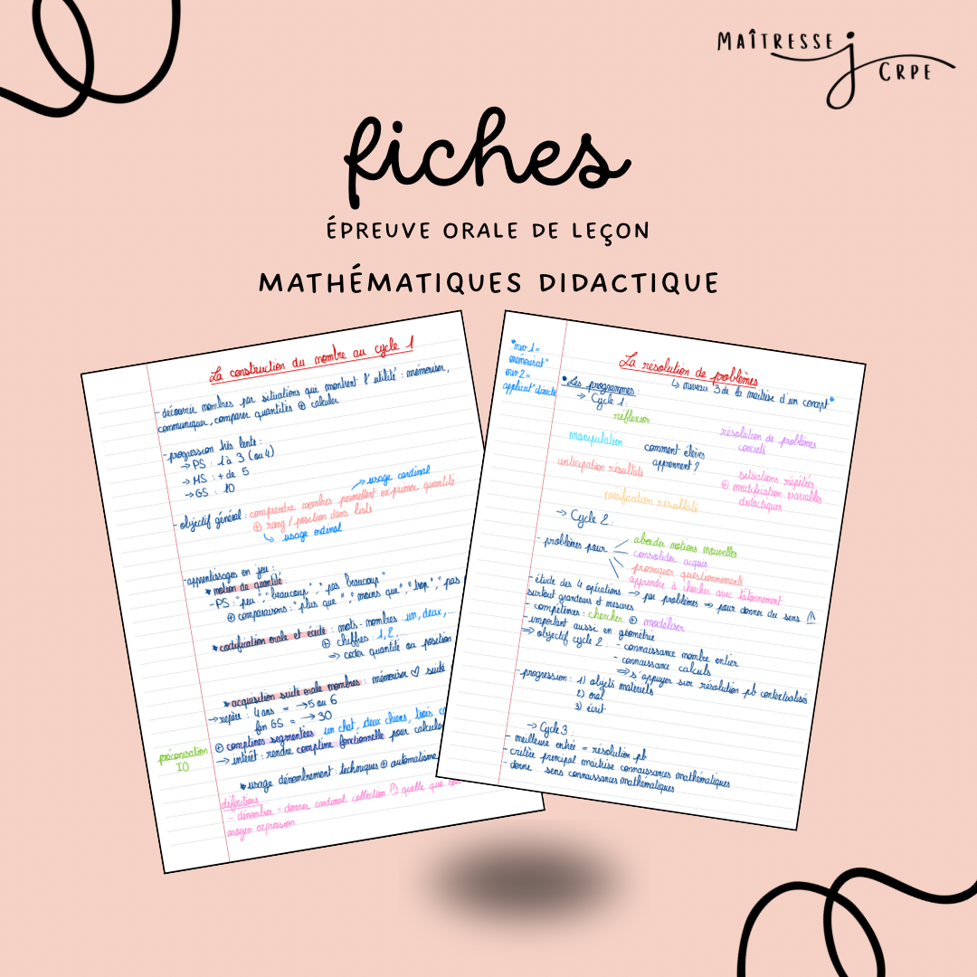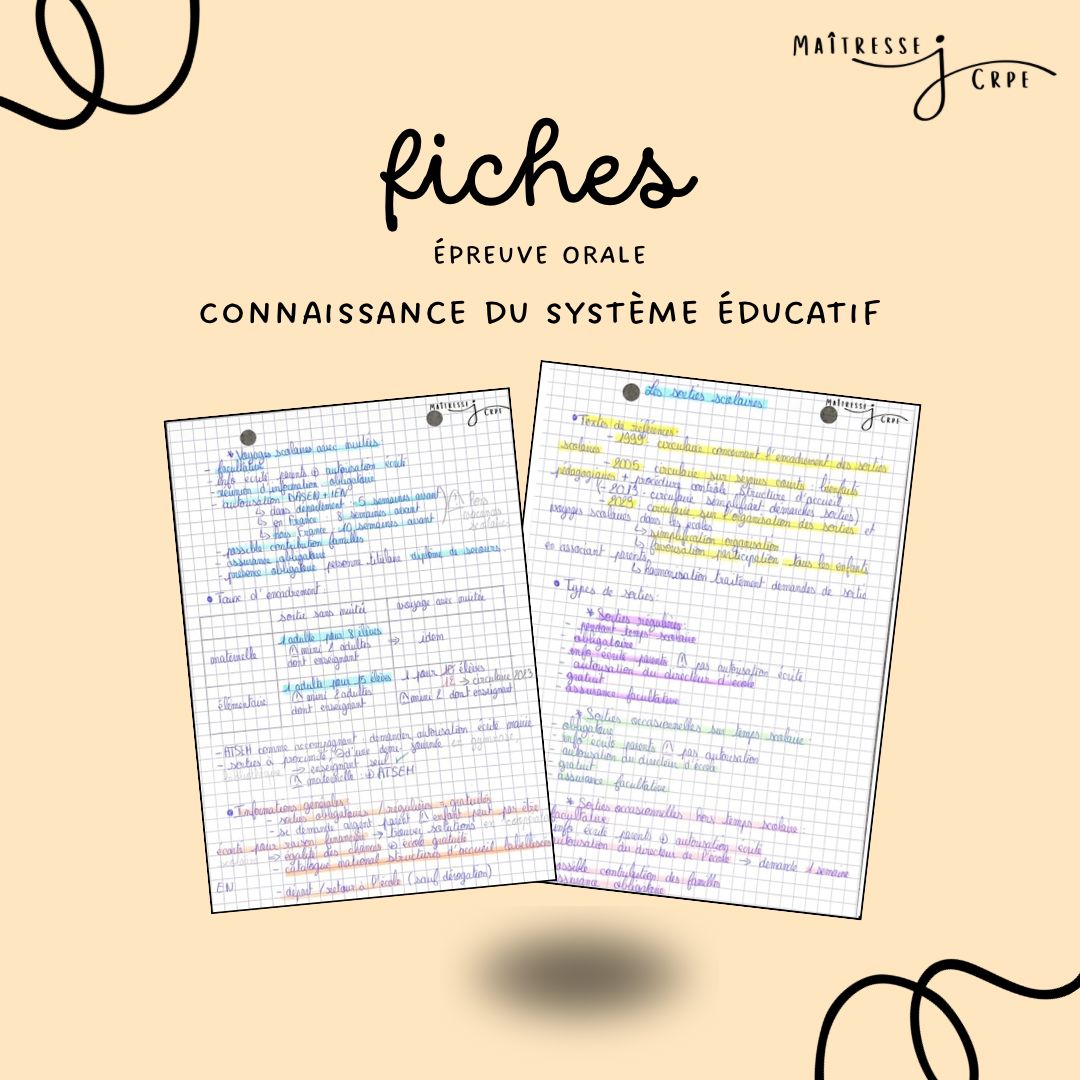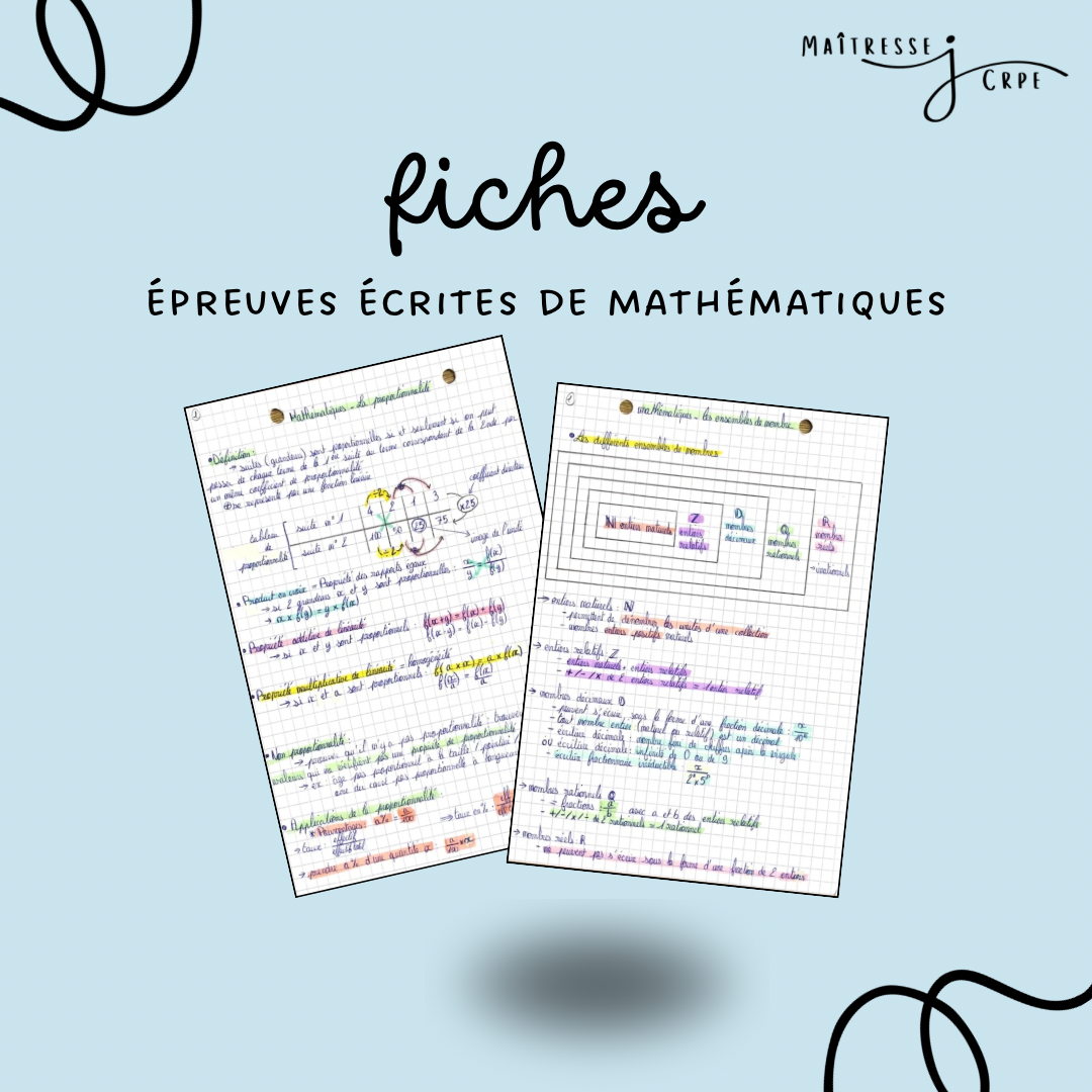 Toutes les fiches sont faites à la main ✍️, en reprenant les informations et les concepts essentiels. Pour les faire, je me suis inspirée de mes cours à l’INSPE de Montpellier 🏫, de ressources trouvées en ligne (que des choses fiables, issues des sites du ministère de l’Education Nationale) et des livres Objectif CRPE afin de les rendre les plus complètes possible 📚 C’est un travail qui m’a pris beaucoup de temps ⌚️, mais cela va t’en faire gagner beaucoup … et crois moi, le temps c’est précieux quand on révise un concours ✨