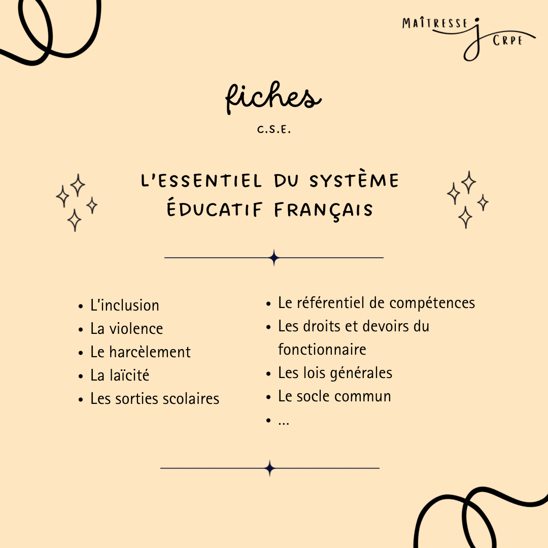 Lot de fiches sur la connaissance du système éducatif, contenant les thèmes suivants :