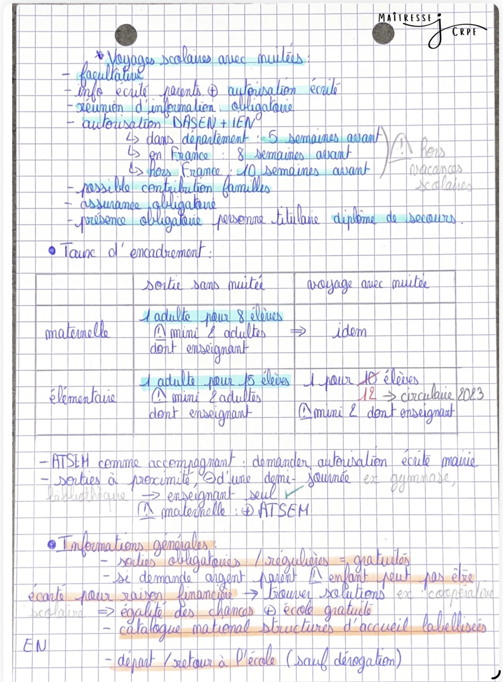 - Les sorties scolaires