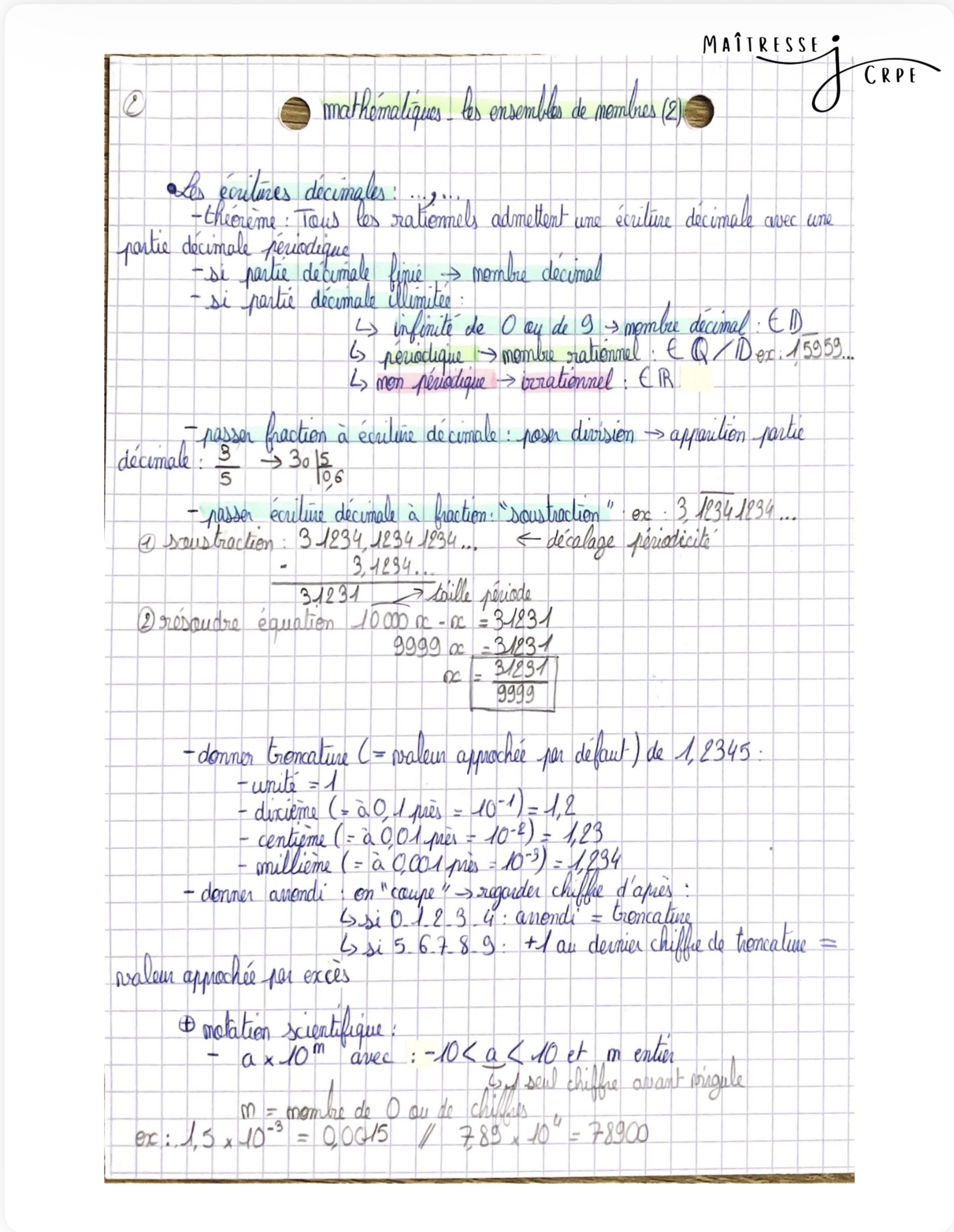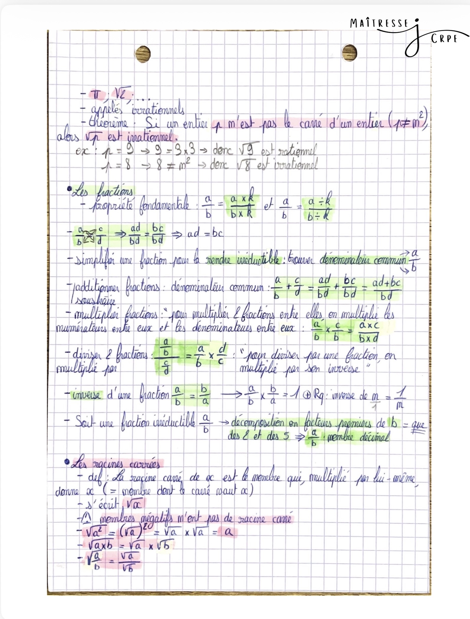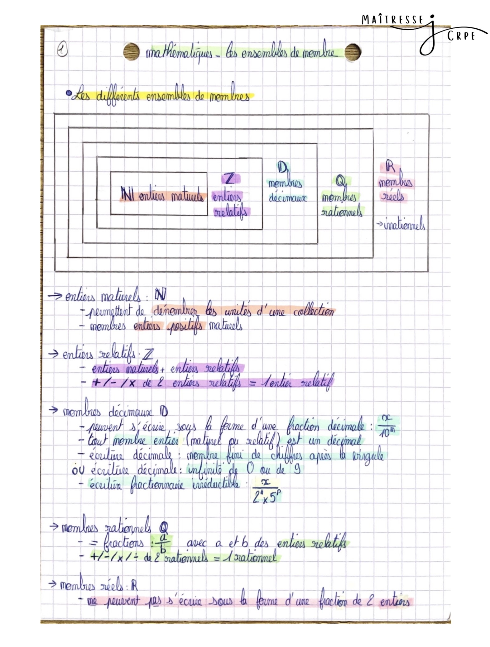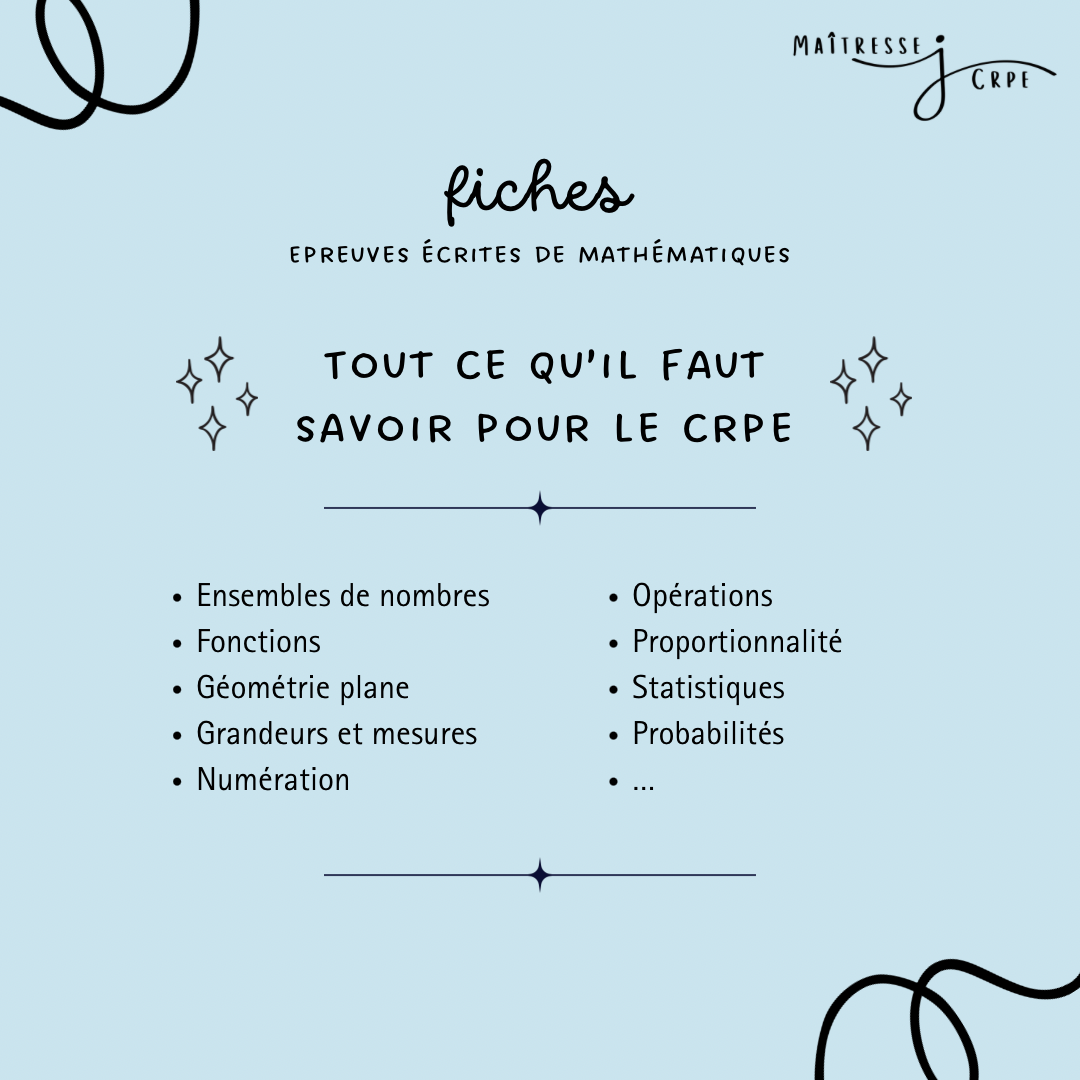 Lot de plus de 30 pages de fiches de révision pour les épreuves écrites de mathématiques du CRPE.